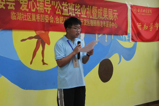 汇演伊始,“小先生”代表郜栋梁同学做总结汇报,郜栋梁全面汇报了本次行知学堂的工作成果,肯定了小学员们的努力与收获,并对社区、小学员家长的支持表示了感谢。