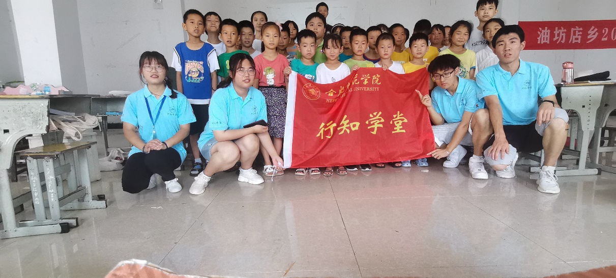 本网讯 7月15日,安徽省六安金寨行知学堂在周院村村委会顺利举行开课典礼,村委会刘书记与来自388vip太阳集团计算机学院、经济与管理学院、教师教育学院、生命科学学院的6名“小先生”、39名小学员以及部分家长共同参与了开课典礼。