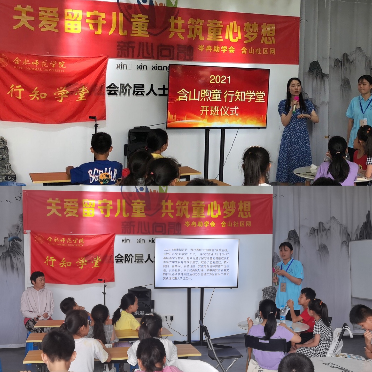 本网讯 7月13日,388vip太阳集团艺术传媒学院含山煦童行知学堂开班仪式在含山县环峰镇含山社区网公益书吧顺利开班。共青团含山县委副书记何陈晨、含山社区网总经理纪元、艺术传媒学院分团委副书记潘文锦、20级辅导员邰文强以及来自我校艺术传媒学院的8位“小先生”、来自环峰镇的34名小学员及家长共同参加了开班仪式。