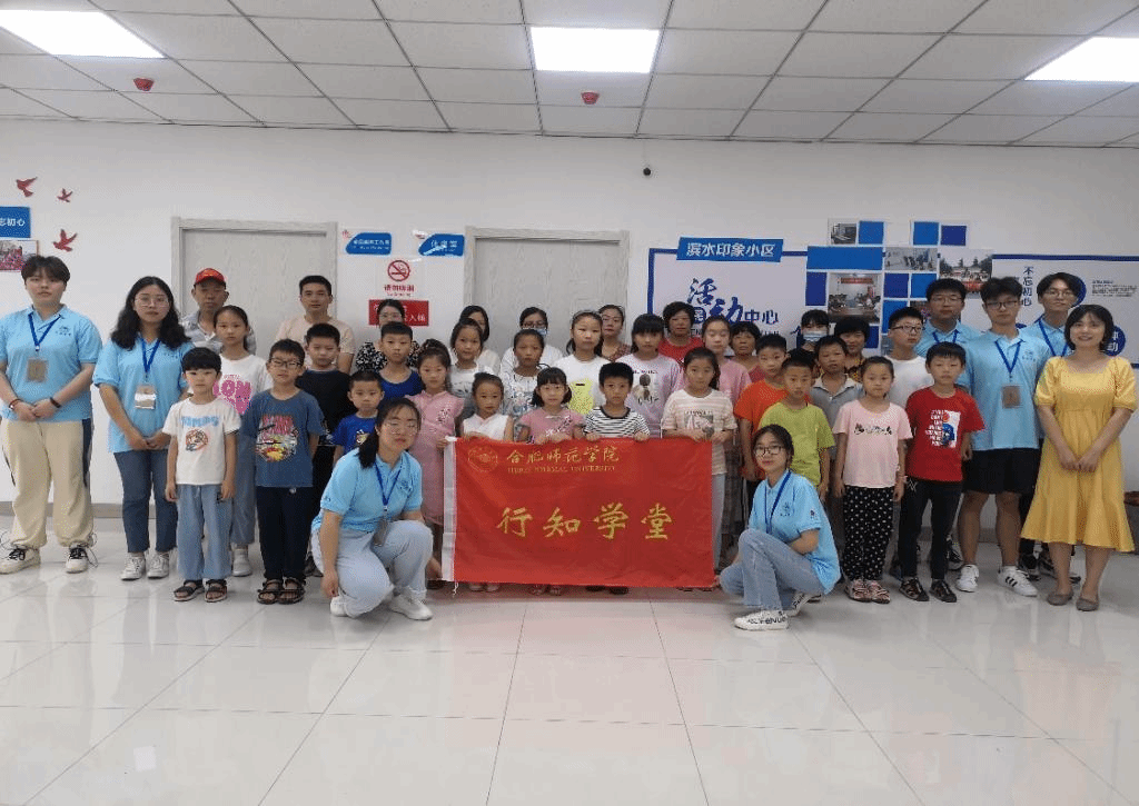 本网讯 为传承红色基因,服务留守儿童,共筑青春梦想,7月7日上午,物理与材料工程学院“筑梦巢桥”行知学堂在合肥市巢桥居委会正式开班。巢桥社区居委会副主任周玥、行知学堂指导老师吴梦云、7名行知学堂“小先生”以及近30名小学生及家长参加了开班仪式。