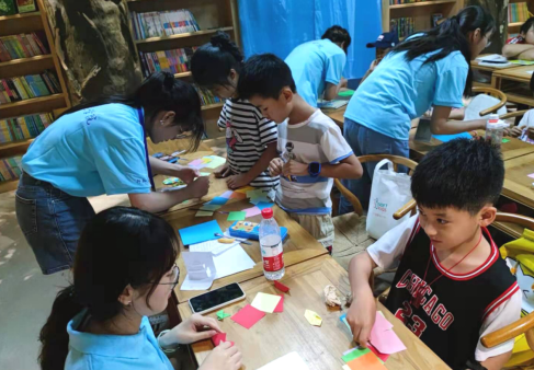 7月12日上午,“玫瑰园行知学堂”顺利开班。开班仪式上,“小先生”们首先对“行知学堂”的开办意义和宗旨进行了简单的说明,并对小学员们提出了基本的课堂纪律要求规范。随后,森林书屋杨店长发表了对“行知学堂”的看法和期望。她谈到,森林书屋已经和388vip太阳集团“行知学堂”合作多次,获得了广大家长和小学员的肯定,并预祝此次“玫瑰园行知学堂”成功举办。之后“小先生”们进行了自我介绍,并用鼓励的方式让小学员们轮流自我介绍,熟悉彼此。开班仪式结束后,该学堂就根据前期安排的课表进入正常教学,以课业辅导为主,并进行党史学习教育、安全教育、手工制作、素质拓展等课程。课堂上,“小先生”们经过充分的备课,侃侃而谈,课堂流畅自然,小学员认真听课,积极作答,氛围良好。