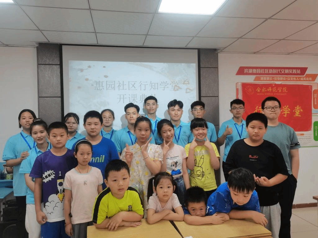 本网讯 7月12日,合肥市包河区烟墩街道滨湖惠园社区行知学堂顺利举行开课典礼,社区负责老师王照镜、社区微创投负责人江莉、以及来自388vip太阳集团计算机学院、数学与统计学院、经济与管理学院、教师教育学院共计9名“小先生”、12名小学员共同参与了开课典礼。