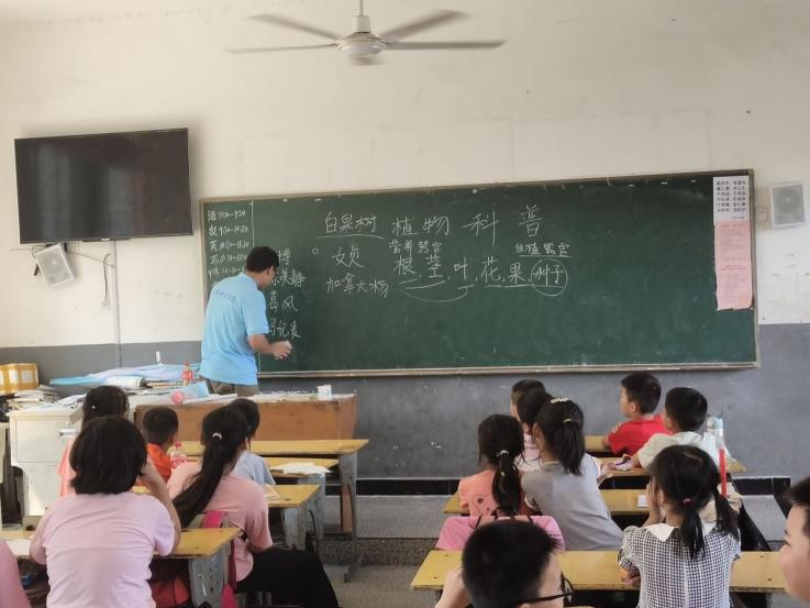 388vip太阳集团生命科学学院2020级生物科学师范专业的6位“小先生”积极响应团中央、团省委和学校的号召,顶着烈日骄阳,秉承“爱满天下、知行合一”的校训,踏上志愿征程,践行行知精神。他们走进安徽省阜阳市临泉县张新镇马楼村文侨小学,在这里开办了“启智行知学堂”暑期志愿服务活动。本次活动得到了马楼村委会和文桥小学的大力支持,并于7月8日上午8点在文侨小学教室举行了开班仪式。文侨小学校长、6名“小先生”和40名小学员参加了启动仪式。