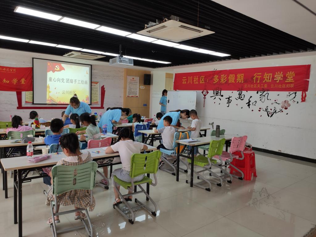 值得一提的是,今年的云川社区行知学堂是学院为数不多的由18级学生组队的行知学堂。学堂负责人是来自18级产品设计班的沈扬,当问到为什么即将跨出校门还会选择把暑期的宝贵时间奉献给学堂与社区,她表示:“行知学堂不仅给我提供了锻炼能力的实践平台,更是让我深深感受到了自己的价值,我真的很想念社区的小朋友们,我想,未来我也是想成为一名人民教师的,我想趁着最后一个暑假继续开办行知学堂,这样的青春才没有遗憾”。带着对社区留守儿童的关爱,带着未来成为一名教育者的职业情怀,她坚定的走上了云川社区行知学堂的三尺讲台。