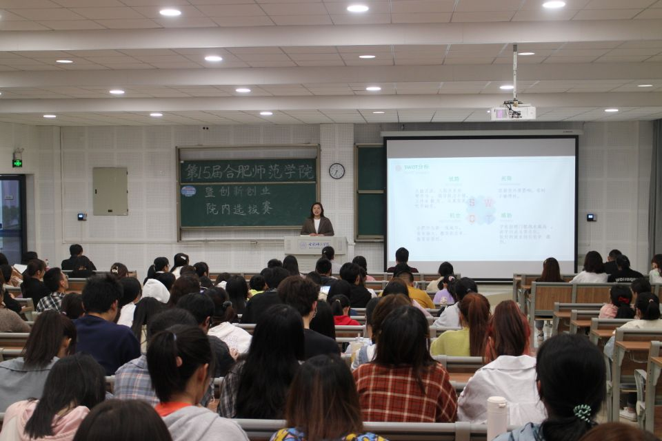 本网讯 为培养学生的创新思维,增强学生的创新创业能力,提升学生综合素质。我院于4月29日在滨湖校区博学楼D101顺利举办第十五届职业生涯规划暨创新创业院内选拔赛,本次比赛邀请数学与统计学院刘全亚、王志老师担任评委,学院学生200余人到场观看比赛。
