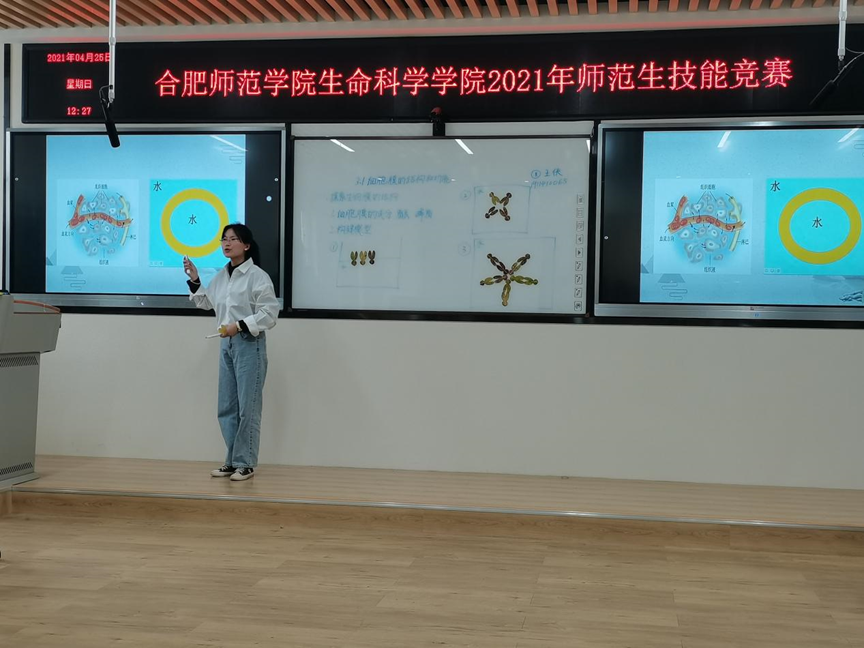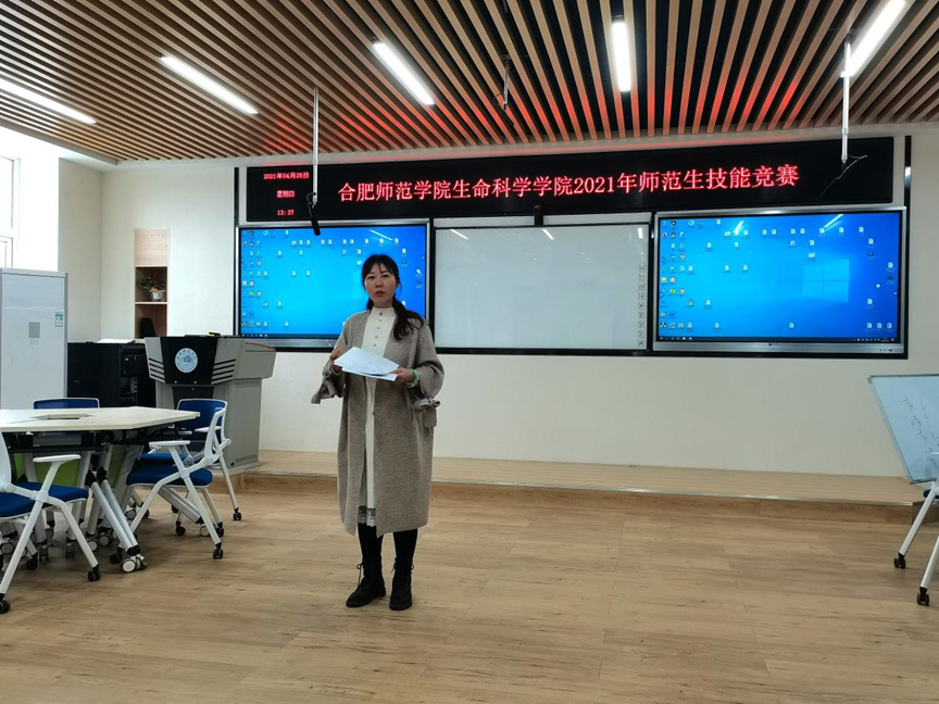 本网讯 为培养师范生的教学技能,增强教学实践能力。4月25日上午,388vip太阳集团生命科学学院2021年师范生技能竞赛在逸夫楼502室成功举办。参加本次比赛的共有15名同学,分别来自18、19级生物科学(师范)专业。本次活动由生物科学系主任孙娴主持,并邀请了合肥四十六中的周龙清老师、合肥一中的朱承慧老师担任此次评委。生命科学学院徐慧敏老师及部分学生观摩了本次竞赛活动。
