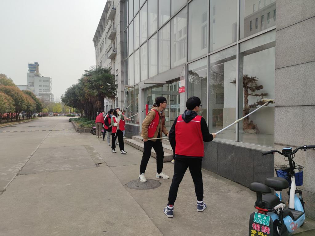 该班另一部分同学在图书馆、博约楼、校园内进行维护环境劳动。