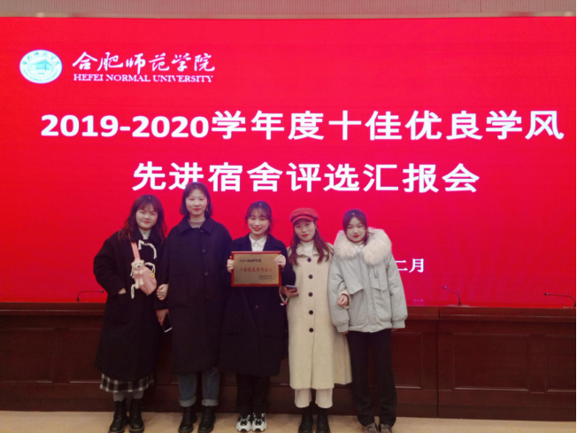 在2019-2020学年综测中,该宿舍四人进入班级前五,全员进入班级前十并荣获奖学金,其中包括国家励志奖学金、“国元证券”一等奖学金、“皖新传媒”奖学金、校级一等奖学金和校级三等奖学金。全员通过英语四级,部分高分通过英语六级,全员取得普通话证书,积极参加“国元证劵杯”安徽省大学生金融投资创新大赛,并获得了省级一等奖的优异成绩;踊跃参加“正大杯”第十届全国大学生市场调查与分析大赛,取得了省级二等奖的好成绩。目前,宿舍成员已取得国家初级会计资格证书、日本语能力测试N3等级证书、全国大学生英语竞赛二等奖等众多证书。