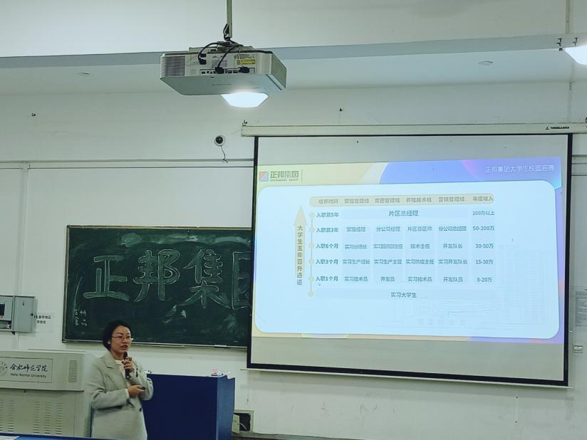 本网讯 企业宣讲进校园,校企联动促就业。生命科学学院于11月20日晚7点在逸夫楼103教室举办了正邦集团校园招聘宣讲会,本次招聘会由正邦集团销售部总经理吴丽君主讲,生命科学学院2017级部分毕业生参加了本次招聘会。