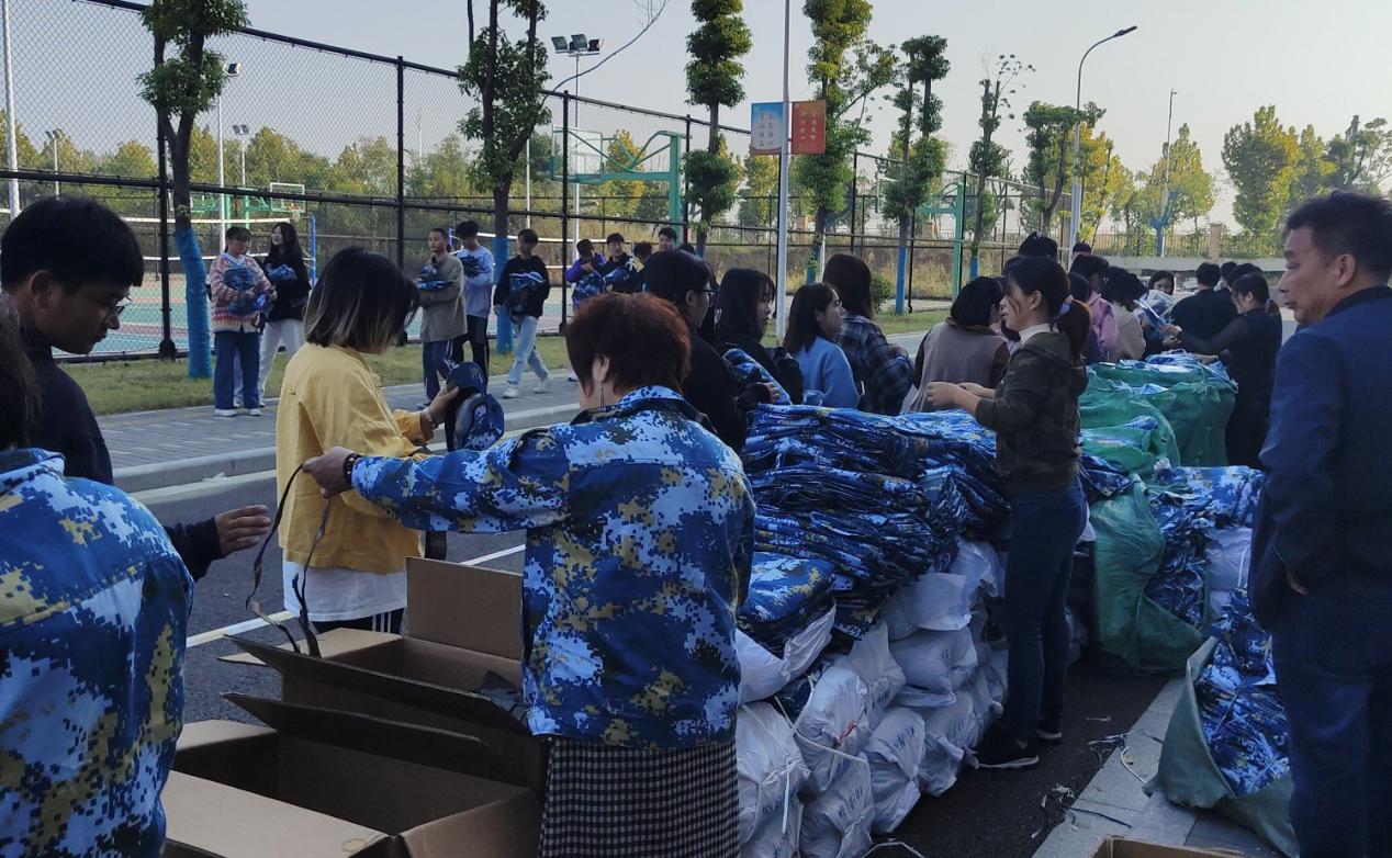 本网讯 10月11日,令人期待已久的合师军训终于拉开了帷幕。上午八时,教师教育学院的学生们怀着无比激动的心情,向着太阳,迎着阳光,来到军训服发放现场。大家看到翠绿的军装,无法掩饰的兴奋在同学们的脸上洋溢着。同学们排着整齐的队伍,有条不紊地领取那套期盼已久的荣耀军装。