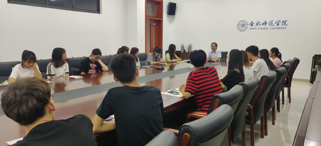 本网讯 为进一步了解同学们对返校复课、校园生活以及疫情防控纪律适应情况,关心了解学生在疫情期间健康生活习惯养成情况。文学院于9月11日晚间在滨湖校区铭传楼会议室2召开新学期学生干部座谈会。出席本次会议的有文学院党委书记李旺生,2019级辅导员以及2019级各班级主要学生干部代表。
