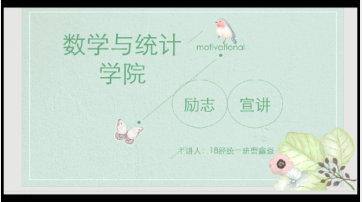 三是组织开展线上励志宣讲。学院组织曹鑫炎和吴义娇两位同学给全院学生做了励志宣讲。两位同学从学习规划、艰辛历程以及未来展望等方面做了宣讲。曹鑫炎同学说道,国家的政策不仅给了自己物质方面的支持,使自己的生活与学习得到了物质保证,更给了自己努力拼搏的勇气和动力,她用自己的行动告诉大家,出生不能改变,但未来可以由自己掌控。吴义娇同学说,在拼搏的路上自己也曾有过动摇和放弃,是国家的政策和老师、同学们的关心给了自己足够的关怀,接下来她将继续奋斗,勇往直前,同时她也告诫同学们在任何时候都不能轻言放弃,要努力学习、懂得感恩,勇于承担社会责任和社会义务,以积极、务实的行动回报国家、回报社会、回报学校。