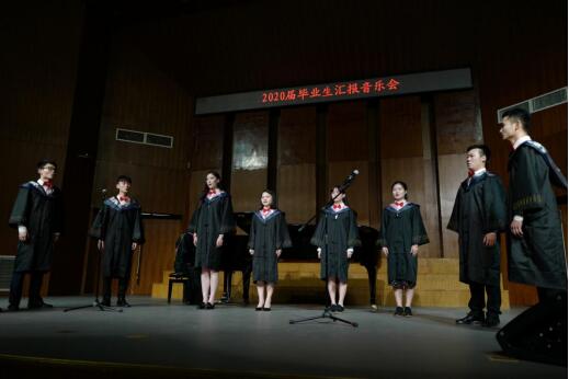 上场,演奏,谢幕,鞠躬,这场音乐会按照既往的节奏进行着,虽然台下没有观众,没有掌声,但是台上演员们的表演依然精彩。毕业生汇报音乐会既是音乐学院学子近四年大学的实践成果汇报,也是毕业生以音乐会的方式为毕业季献礼的一种方式,对于音乐学院深入探索音乐专业实践教学方式方法以及拓展音乐艺术实践教学平台建设等方面都具有十分重要的意义。(音乐学院)