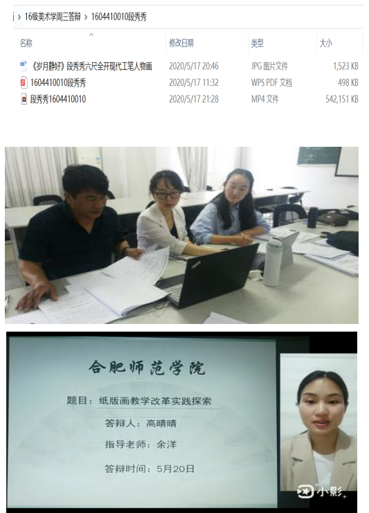 不论是对于学生,还是对于答辩教师,“云答辩”都是一次陌生而又紧张的体验。为确保“云答辩”工顺利开展,高质量完成答辩任务,答辩组老师们提前熟悉了“云答辩”流程、软件功能、规范细节以及新的答辩方式,现场观摩了美术学专业组织的答辩流程预演,各答辩组也组织了模拟演练答辩。另外,指导教师也对学生进行了答辩辅导,为学生讲解答辩注意事项、模拟现场答辩,让学生提前感受视频答辩的气氛;及时了解学生的心理状态,对部分出现的紧张焦虑的情绪学生给予疏导师生通力合作,为答辩工作的顺利开展提供了保障,实现了与线下答辩实质等效、要求提高和质量不降的工作目标。