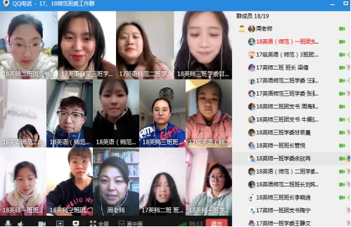 本网讯 根据学校统一部署,为进一步做好学生疫情防控工作,确保学生健康安全,2月16日下午,外国语学院辅导员周贵勤通过网络主持召开本学期第一次学生干部会议,2017级和2018级英语(师范)专业班委参加会议。