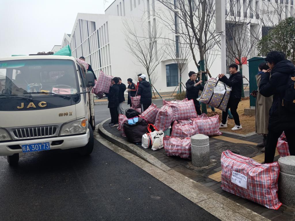 12月21日中午1点,滨湖校区2019级化学师范班共79名学生早早将打包好的行李搬至3号楼北边马路边。在老师和学生干部的帮助引导下,全体同学积极配合,有序等待货车和客车的到来。搬迁过程中,同学之间充分发挥互帮互助、团结合作的精神,化院其他班男生同学主动帮助女生搬运行李,整个搬迁过程秩序井然。参与活动的同学表示,这不仅提高了宿舍搬迁的效率,也进一步加深了同学之间的友谊,培养了大家的团队协作精神。