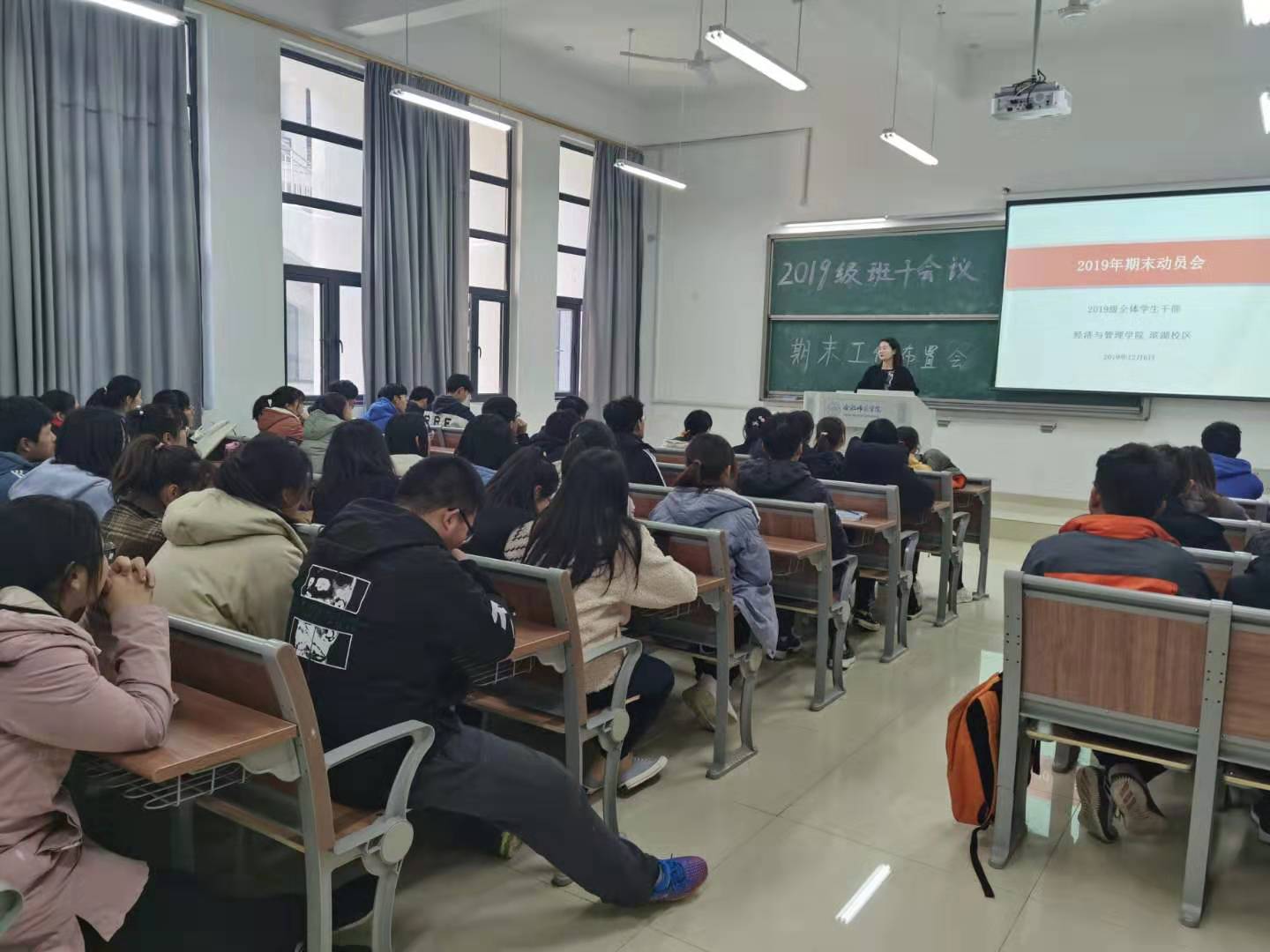 本网讯 12月6日下午,经济与管理学院召开了2019级班干会议,本次会议由辅导员陈梦莹老师、王瑞瑞老师主持,2019级全体班委和寝室长参加了本次会议。