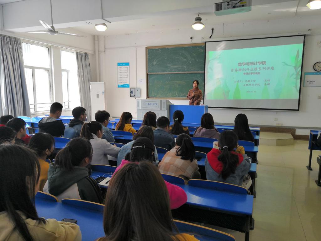 本网讯 11月22日上午,数学与统计学院在逸夫楼A207教室开展了青春微积分生涯系列讲座,邀请2019届数学与应用数学专升本班毕业生、现就读于安徽大学研究生的王甜和388vip太阳集团研究生的李明作为分享嘉宾,与2019级数学与应用数学专升本班的同学分享了考研经验。2019级数学与应用数学专升本班辅导员周倩主持了此次活动。