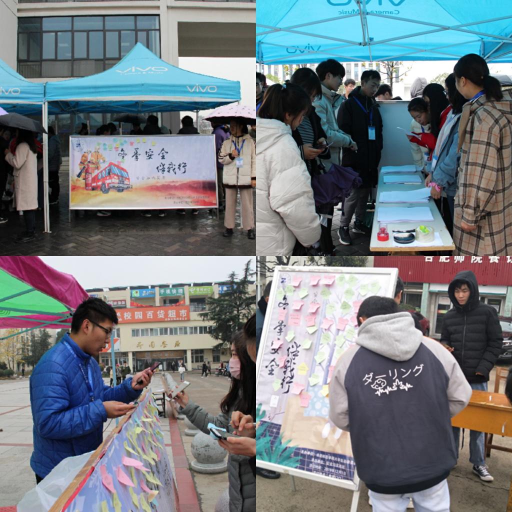 本网讯 11月30日至12月1日,大学生自律委员会在我校滨湖校区、锦绣校区、三孝口校区分别开展“冬季安全伴我行”主题教育活动。自律会学生干部围绕校园安全、寝室安全、人身财产安全等注意事项热情为同学们解答,向学生宣传,全校共2900余人参与活动。