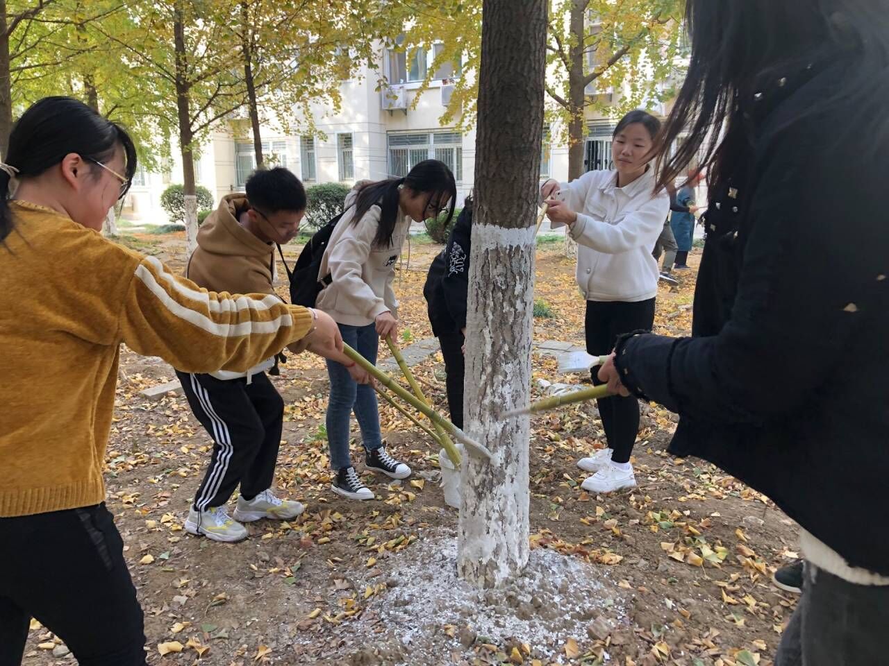 实践活动虽然只有一个中午的时间,但大家受益匪浅,不仅认识到了环境保护的重要性,同时也在给树木刷石灰水时,了解到本专业植物的相关知识,了解到冬天给树木刷石灰水是为了杀虫杀菌,减轻春天病虫危害,以及防树皮被动物咬伤和防冻害保温,更是体会到了劳动者的不易以及劳动带来的快乐。