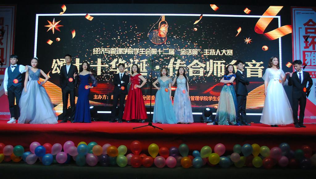 本次比赛以“颂七十华诞,传合师金音”为主题,旨在促进校园精神文化建设,丰富同学们的大学生活。经过长达两周的选拔与训练,共有12位参赛选手进入决赛。比赛中,每位选手通过自我展示,才艺表演以及主持搭档等环节开展了激烈的比拼,更是赢得了观众们热烈的掌声。