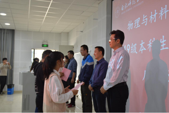 接着,物理系、新能源系、光电系、材料系四位系主任李冬鹏、訾振发、余龙宝、薛燕分别宣读了导师名单和结对指导学生名单,向同学们一一介绍了担任导师的老师们。