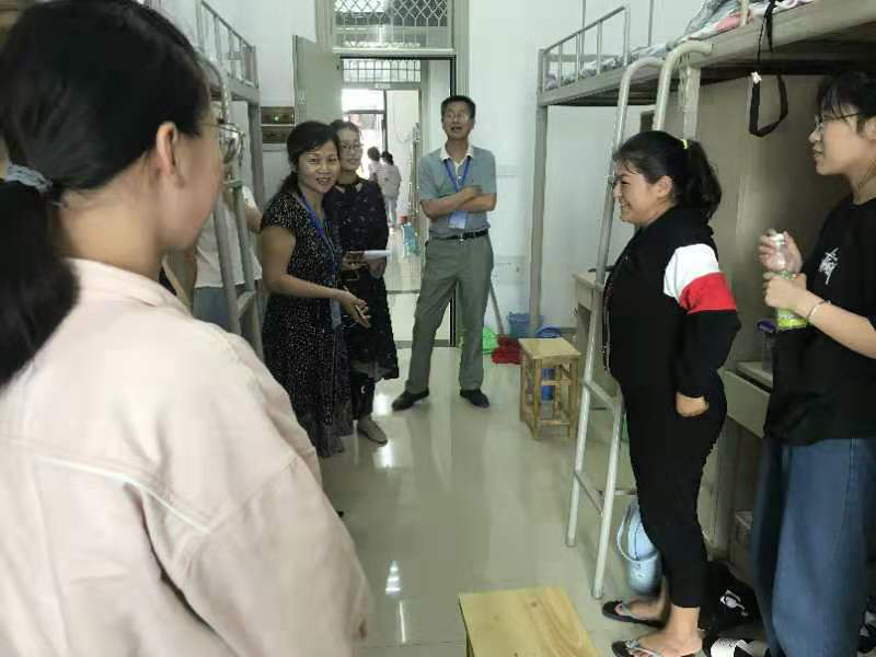 郭桃芬一行进入宿舍后,与新生、家长进行了亲切交流,提醒新生注意人身安全、财物安全,夜晚尽量不要外出,拒绝各种推销,以防上当受骗。鼓励新生尽快适应大学生活,合理制定大学四年的愿景计划,打好专业基础,积极参与社会实践,同学之间团结友爱。新生家长对学院领导老师的悉心关怀表示由衷的感谢,对学校各个报到环节的细心安排和热心周到的服务以及校园环境、住宿条件等非常满意,表示非常放心把孩子送到我校学习,同时家长希望学院能对孩子们严格要求,让他们在大学里能学有所成。