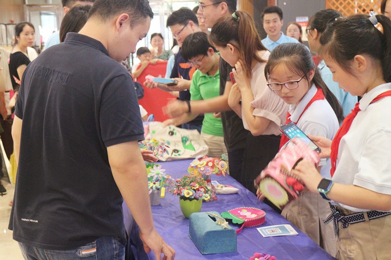 汇演中场的义卖环节,首先由星星守望项目指导教师周倩宣讲了此次义卖的特殊意义,随后现场的观众自发参与到义卖活动中,通过用捐赠和购买自闭症孩子手工作品的形式奉献出自己的一份爱。最后,汇报演出在一首优美深情的合唱《苔》中圆满结束。