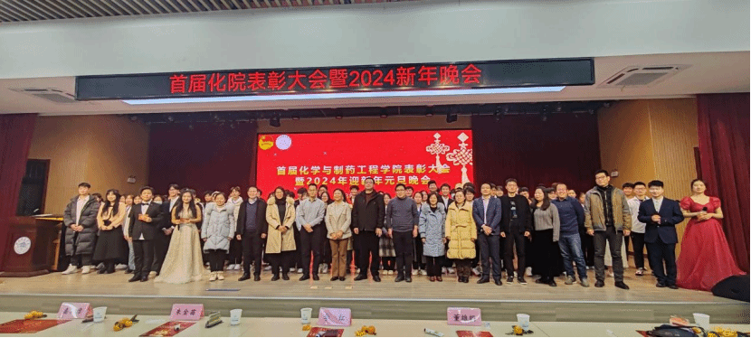 为进一步将美育融入落实立德树人根本任务全过程,促进青年大学生德智体美劳全面发展,12月28日,化学与制药工程学院举办首届学生表彰大会暨2024新年晚会。院党委书记李红、院长朱金苗、副院长董雄辎及专业教师、辅导员参加晚会现场,与全体学生共聚一堂,共同迎接新年。