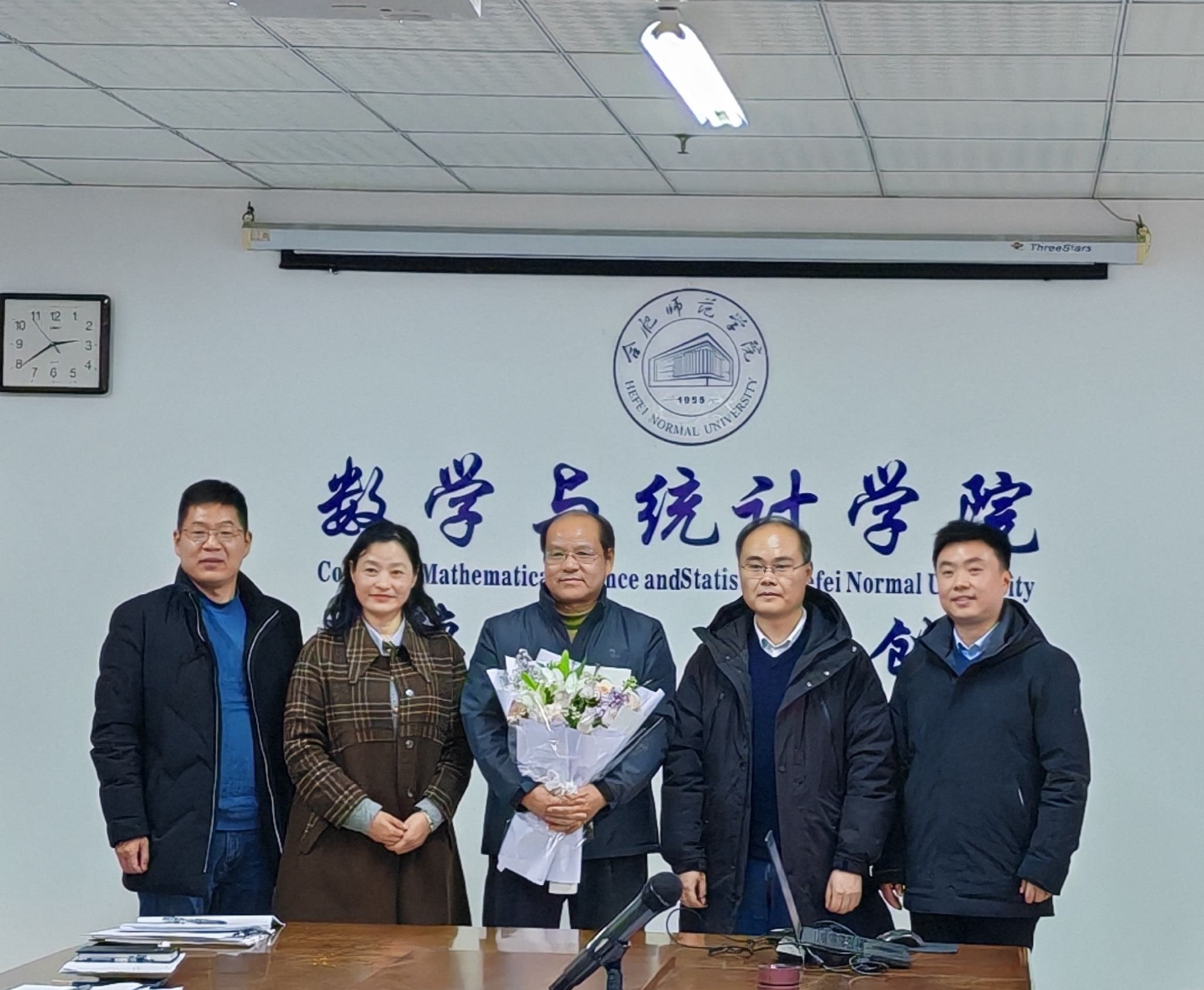 穆娟首先介绍了王家正的从教经历。王家正1986年7月从安徽大学毕业即来到学院工作,曾担任数学与统计学院院长,从教38年,热爱教学,爱岗敬业,一直勤勤恳恳,把最美好的青春年华都无私奉献给了学院的教育事业。他曾荣获“安徽省教学名师”“安徽省模范教师”“安徽省优秀共产党员”等荣誉,为学院发展作出了自己的贡献,是学院发展的推动者和见证者,是全体教师学习的榜样和楷模。穆娟对王家正为学院所做的贡献致以衷心的感谢和崇高的敬意,希望今后能继续为学院高质量发展建言献策。