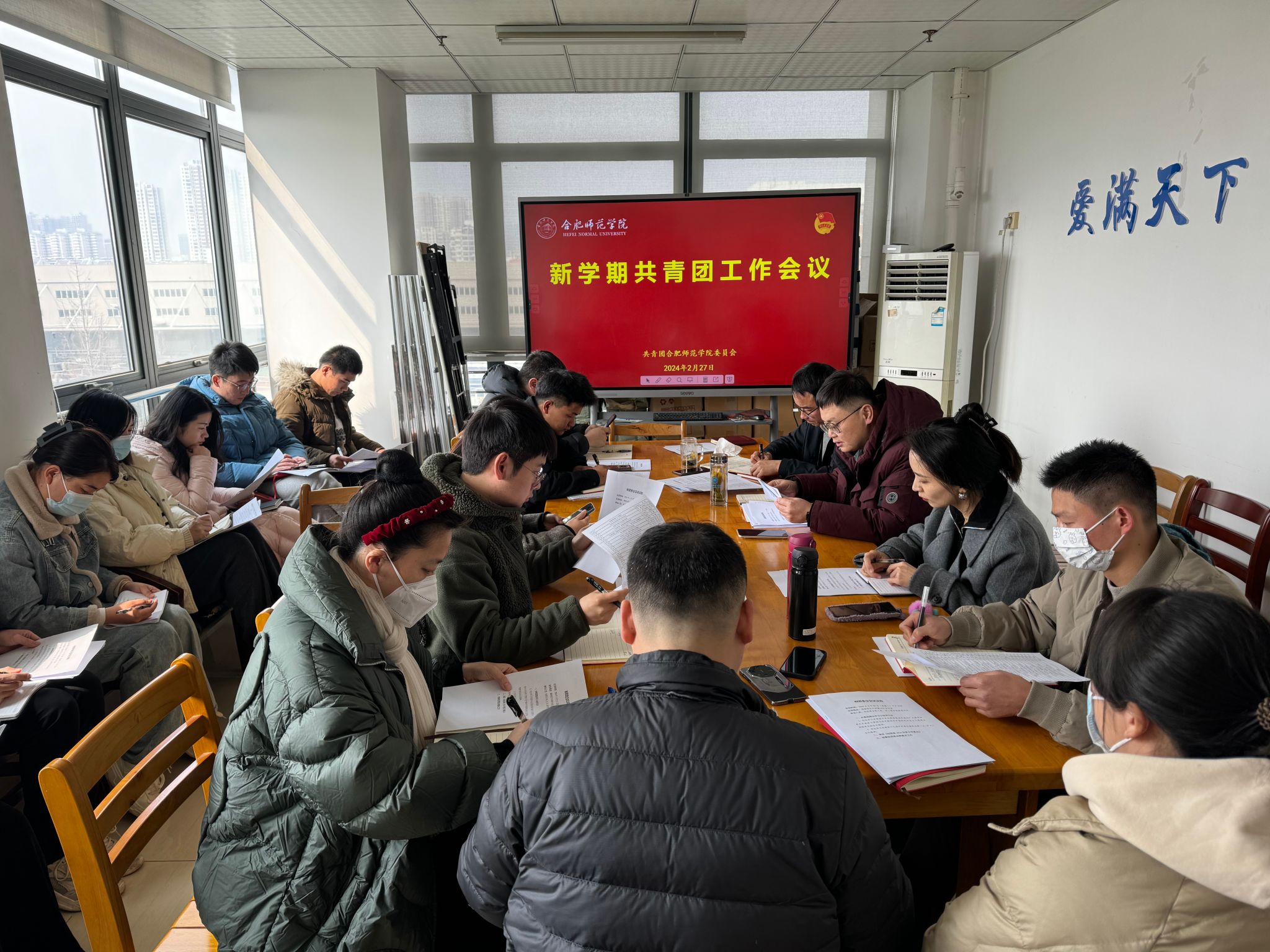 2月27日下午,学院新学期共青团工作会议在锦绣校区行知楼召开,院团委委员、各二级学院团委负责人及院团委全体人员参加会议。院团委书记刁文彬主持会议。