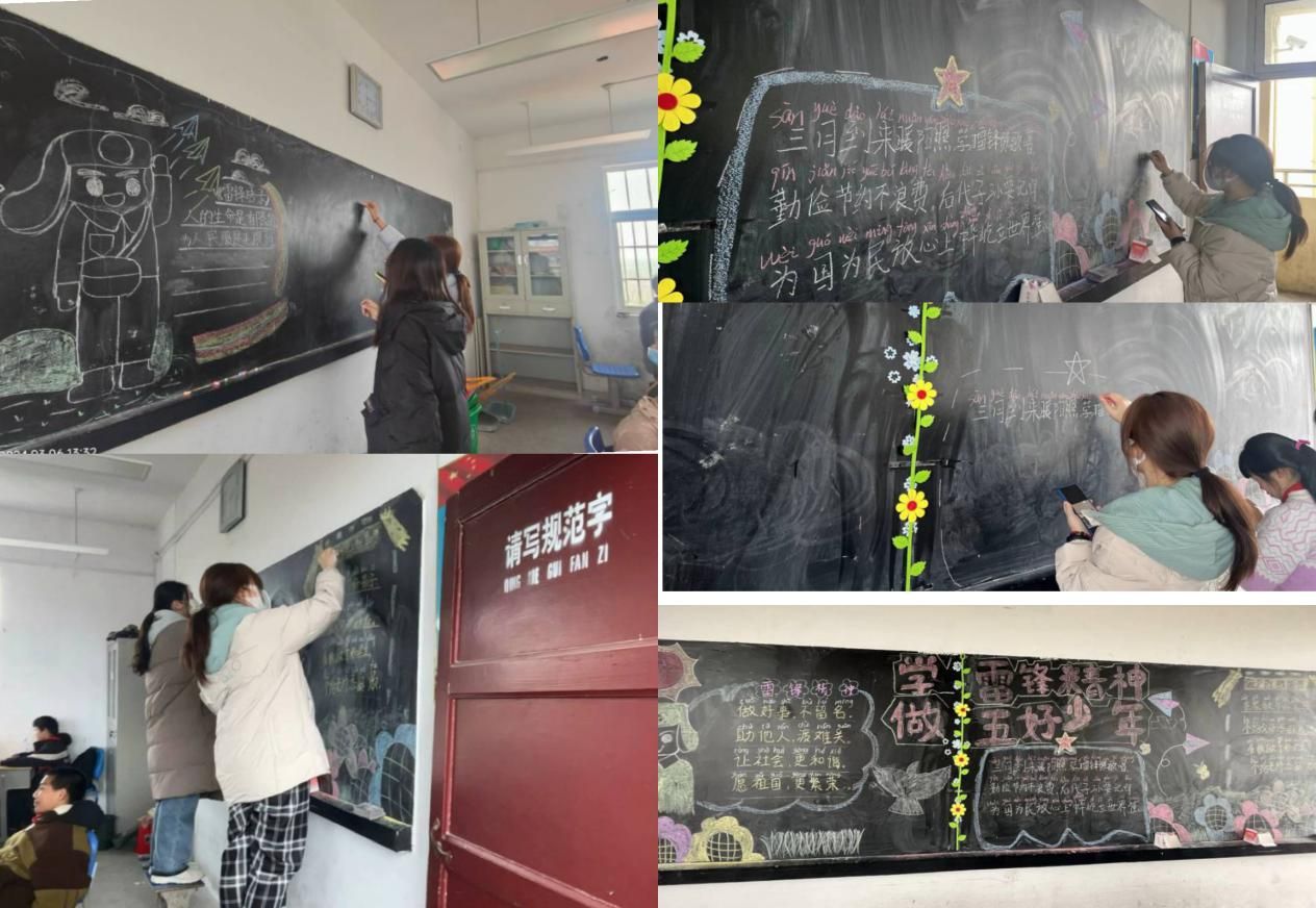 活动伊始,志愿者们生动地讲述了雷锋同志的生平事迹,小学生们聚精会神地聆听并积极参与互动。随后,志愿者教唱《学习雷锋好榜样》,并播放了《雷锋》《有风》等视频,小学生们积极踊跃,稚嫩的歌声与志愿者的领唱交织融合,谱出悠扬的乐章。在志愿者的带领下,小学生们一起参与绘制主题板报、清理校园,用文字展示永恒的雷锋精神,用行动续写新时代雷锋精神。