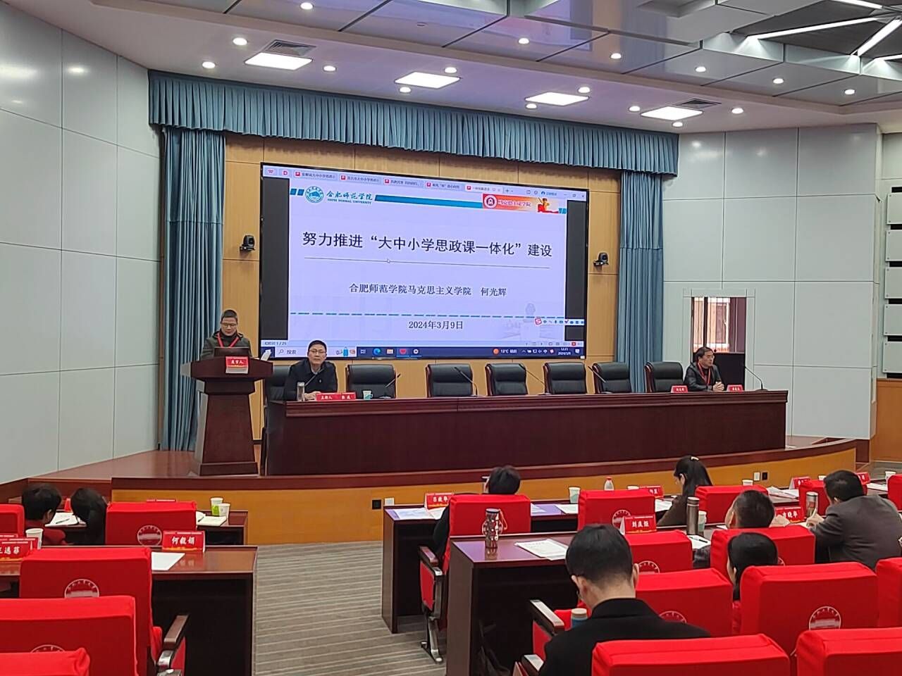 3月9日,安徽省大中小学思政课教研一体化建设工作推进会在合肥工业大学召开。安徽省教育厅、省教育科学研究院等相关领导以及来自全省18家大中小学思政课一体化共同体成员单位代表共计200余人参加会议。