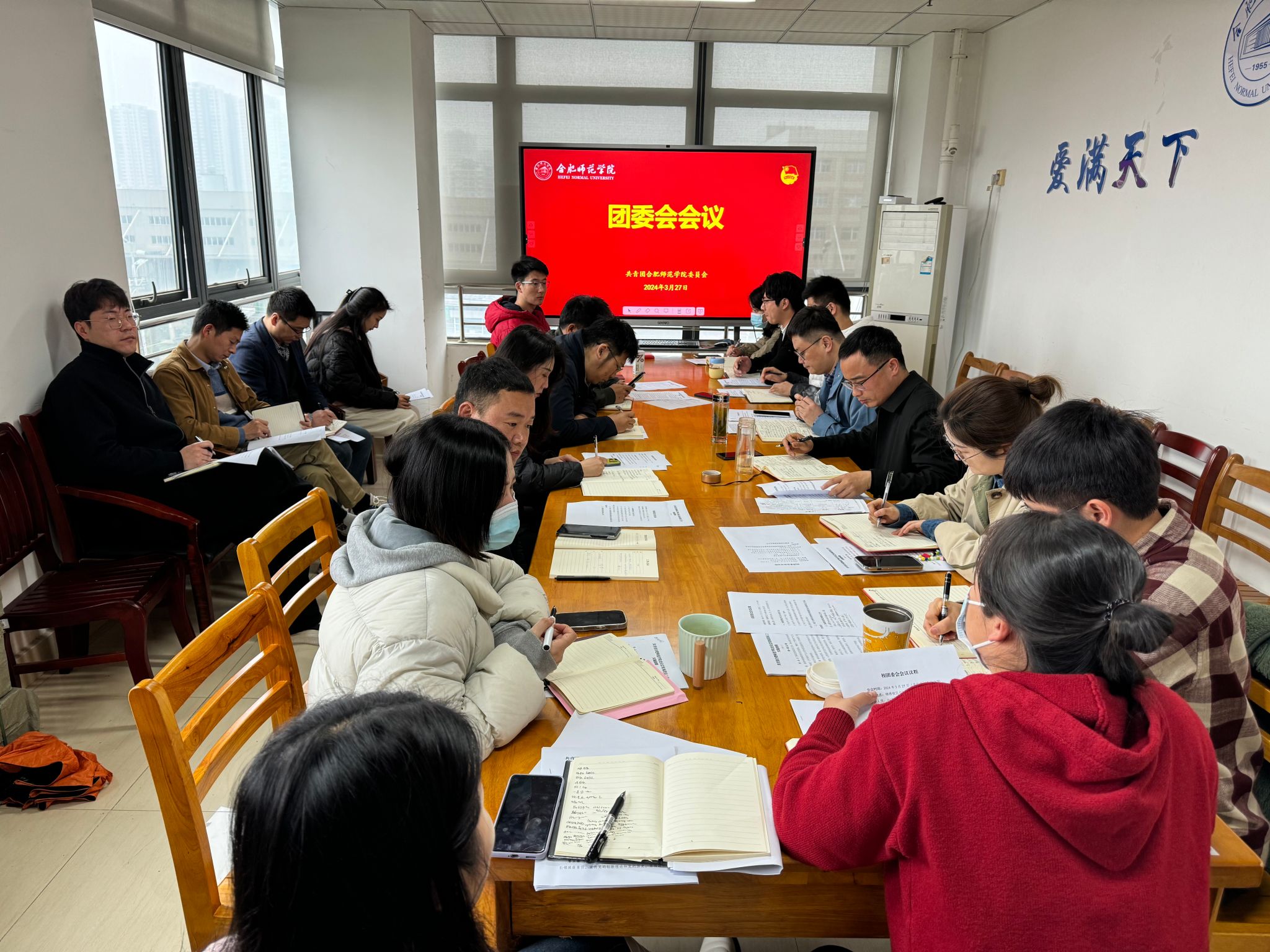 3月27日上午,院团委在锦绣校区行知楼召开团委会暨共青团理论学习小组学习会。院团委委员、学院共青团理论学习小组全体成员参加会议,院团委书记刁文彬主持会议。