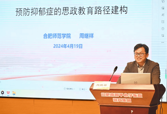 在专家讲座环节,周继祥老师做了题为“预防抑郁症的思政教育路径建构”的专题讲座。讲座基于“健康中国战略”的视角,认为思政工作者应主动承担服务国家重大需求的社会责任;并重点解读了教育部《生命安全与健康教育进中小学课程教材指南》等文件精神,结合中小学思政课的课标、教材内容,分别从提升学生认知水平、开展生命意义与价值观教育和开展情感情绪管理教育三个方面介绍了思政课预防抑郁症方面的案例教学设计。