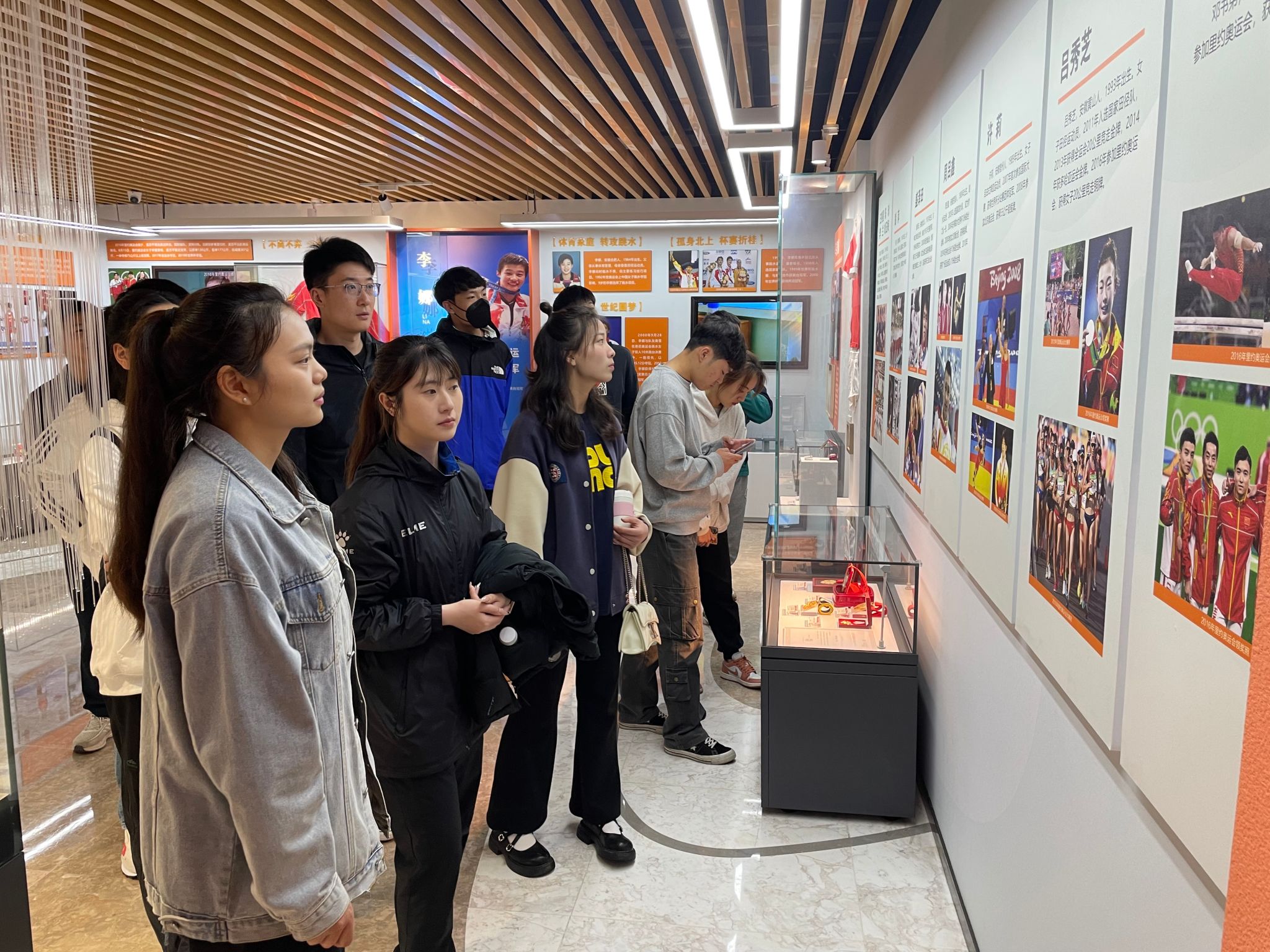 跟随讲解员,学生党员们有序参观了馆内成果展区,大家近距离参观了馆内陈列藏品,了解了许海峰、邓琳琳、孟苏平等奥运冠军的运动生涯、运动成绩、夺冠瞬间和社会贡献,一张张照片、一块块奖牌、一段段拼搏奋斗的故事,展陈了安徽体育光辉历程、辉煌成就和宝贵经验,让大家感受到江淮健儿为国争光的爱国精神。