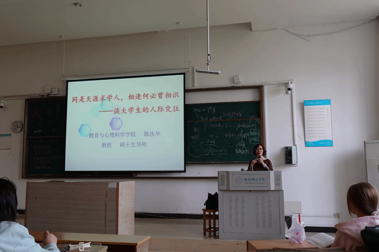 为进一步加强学院心理健康教育工作,普及心理健康知识,促进学生心理健康发展,为学生成长减压赋能,5月16日,生物与食品工程学院在博约楼108教室开展了“心理大讲堂”活动。本次心理健康大讲堂主题为《同是天涯求学人,相逢何必曾相识》,教育与心理科学学院陈庆华教授主讲。