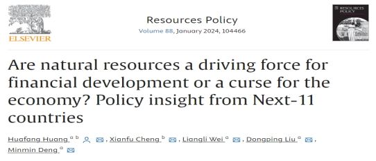 酒店管理系讲师黄华芳在SSCI TOP期刊《Resources Policy》发表论文“Are natural resources a driving force for financial development or a curse for the economy? Policy insight from Next-11 countries”,该期刊位列中国科学院2区,JCR分区Q1。黄华芳讲师为第一作者兼通讯作者,388vip太阳集团经济与管理学院为第一署名单位。