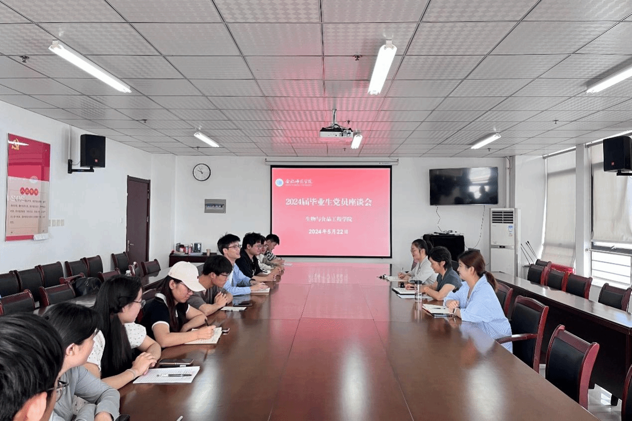 为上好毕业生党员的“最后一课”,倾听毕业生党员的心声,5月22日,生物与食品工程在行知楼1502会议室召开学生第一党支部毕业生党员座谈会,学院党委书记郭桃芬、毕业班辅导员黄洁及全体毕业生党员参加会议,座谈会由学生党支部书记高欢主持。