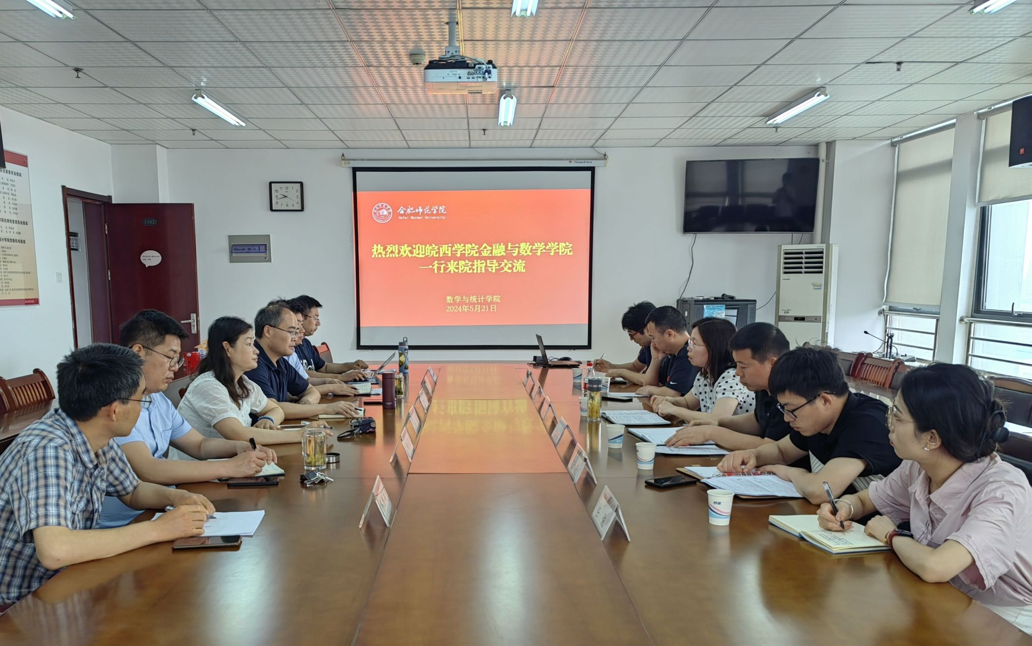 5月21日上午,皖西学院金融与数学学院党委书记郑红蕾,副院长王修建一行6人到数学与统计学院调研交流。学院党委书记穆娟,党委副书记、院长杨刘,副书记陶金昌,副院长黄浩以及相关基层教学组织负责人参加了交流会。