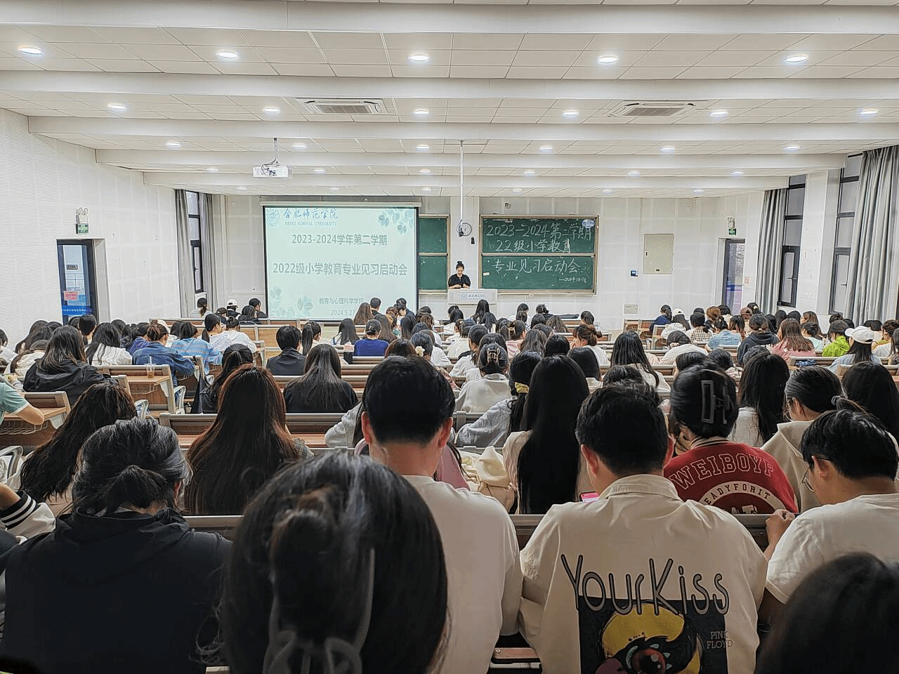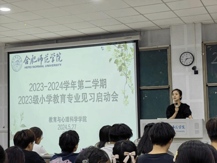 为顺利推进小学教育专业见习活动,引导学生做好见习前的各项准备,5月27日晚,教育与心理科学学院在滨湖校区博学楼A108教室召开2022、2023级小学教育专业见习启动会。会议由教育系副主任唐银主持,2022、2023级小学教育专业全体同学参加会议。