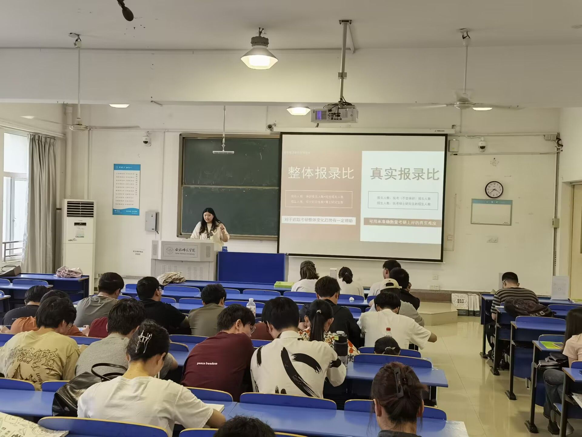 为给我校有考研意向的学生提供切实有效的备考规划和指导,学会如何报考、备考、选择院校专业等技巧,增强考研信心,6月19日,学院在锦绣校区逸夫楼A201教室举办2024考研指导公益讲座。来自各二级学院共计100余名学生现场聆听了讲座。