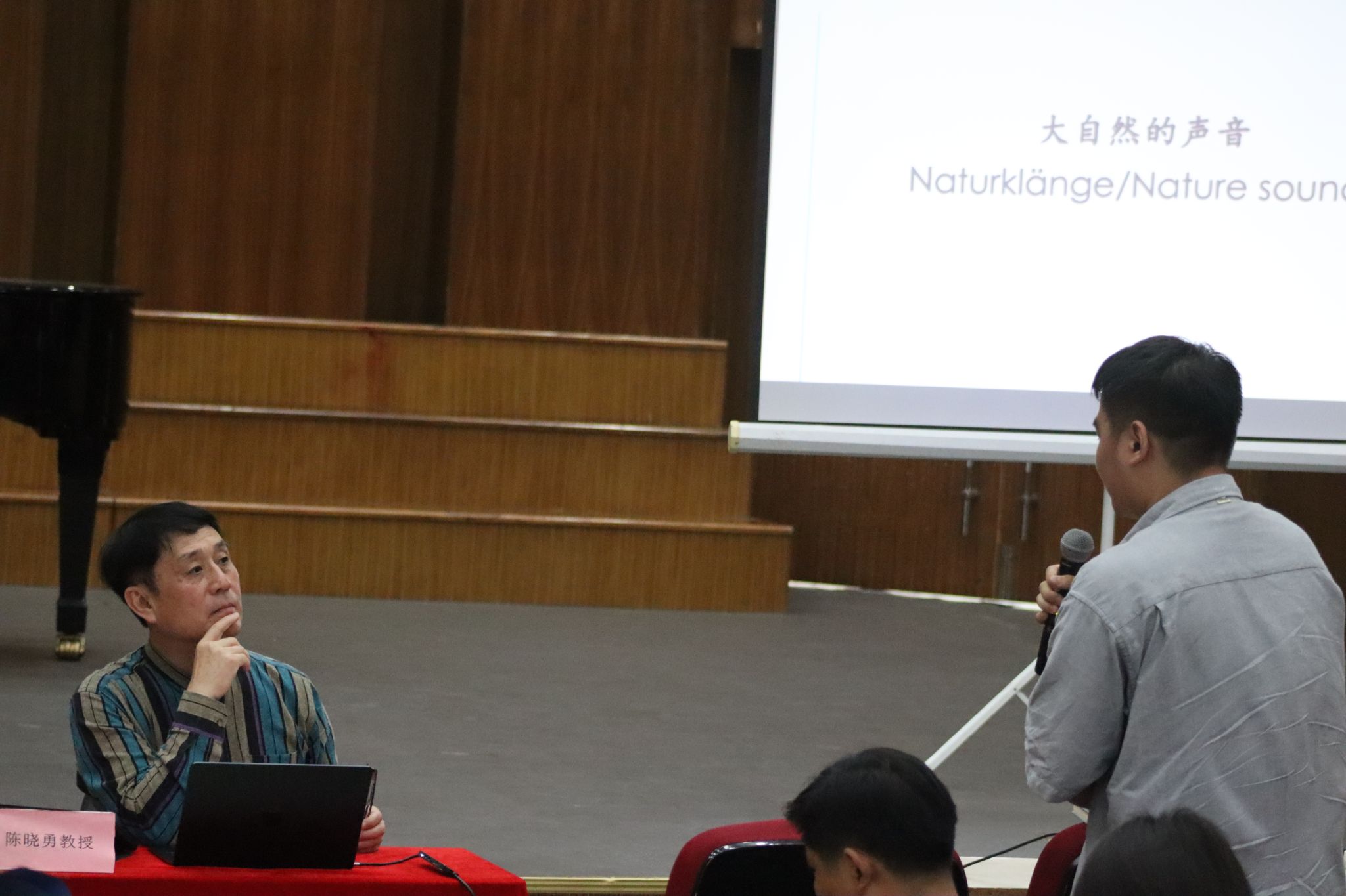 讲座现场学术气息浓厚,陈晓勇教授就现场学者提出的“无调性音乐的表现手法”“人声器乐化”“音乐形象的塑造”等问题和大家进行了交流和探讨。在讲座中,听众们通过一个个谱例,一首首作品感受到陈晓勇教授用音乐向欧洲、向西方世界展现出东方音乐文化的美学意蕴与哲学思想,为中西文化交流做出了贡献。音乐学院师生和部分兄弟院校的师生聆听了陈老师的现场讲座,听众都为陈老师锲而不舍的专业态度与博大精深的专业知识由衷折服。