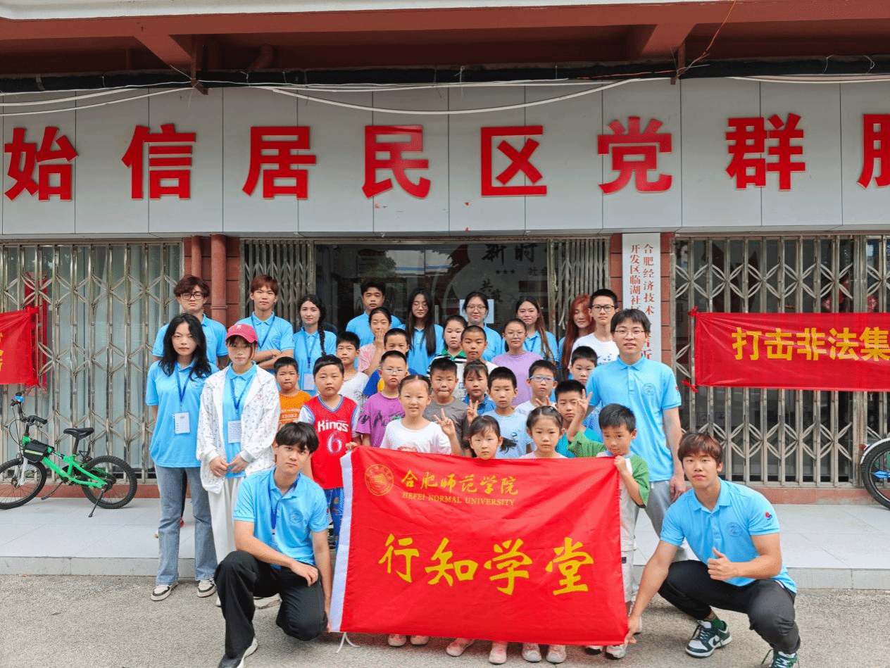 7月8日上午,物理与材料工程学院始信行知学堂在合肥市经开区临湖社区始信居民区党群服务中心正式开班。临湖社区始信居民区负责人、学堂指导老师韩翔、13名行知学堂小先生、全体小学员及家长共同参加了开班仪式。