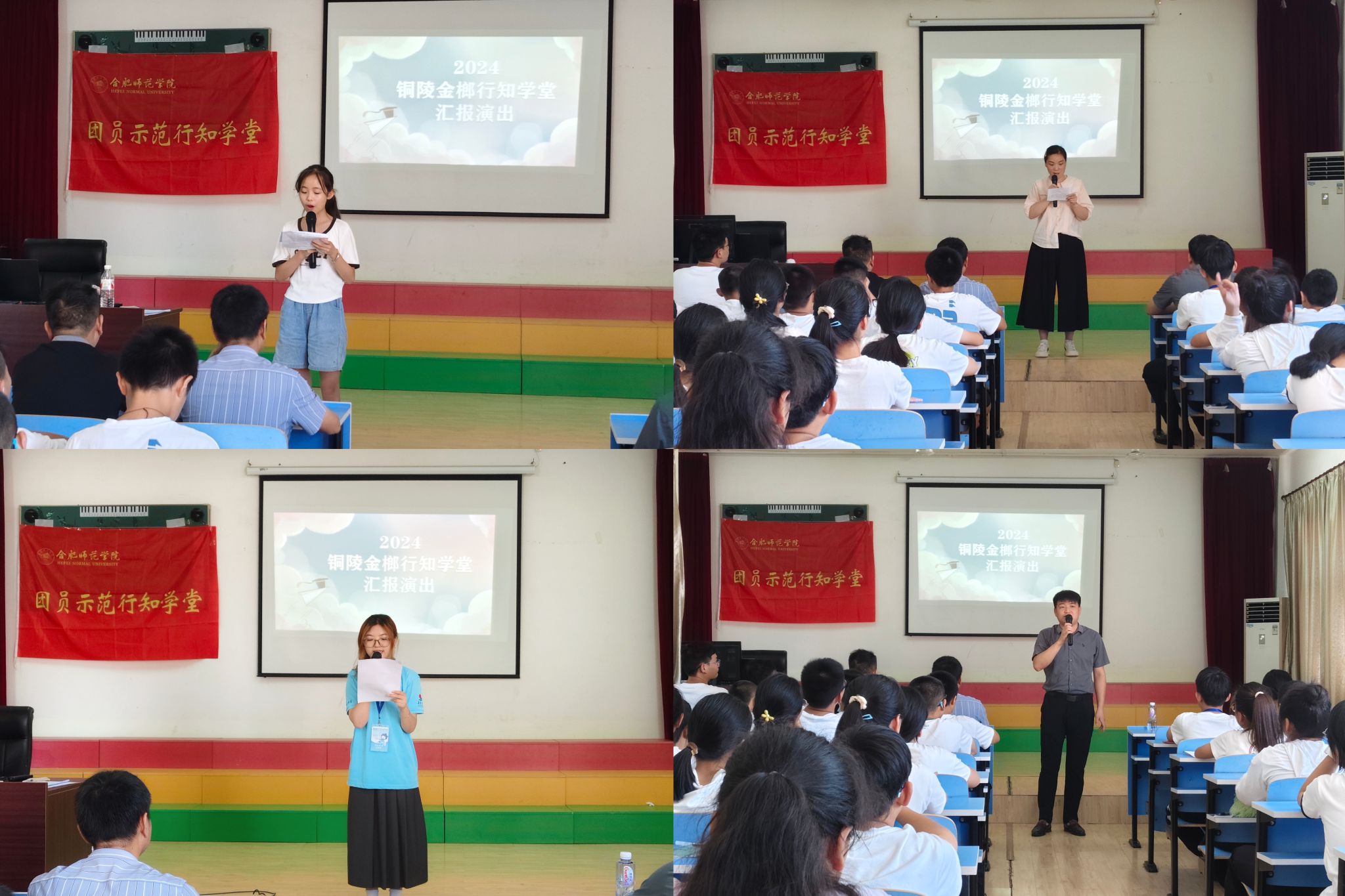 7月29日上午,为期22天的铜陵金榔行知学堂暑期社会实践活动圆满落幕。结业仪式暨文艺汇演活动在金榔中学报告厅顺利展开,金榔中学党支部书记、校长钱朝亮、金榔中心小学党支部书记、校长陈志丹、金榔中学教务主任何淼、金榔中学办公室主任胡文杰、全体“小先生”、小学员及家长参加活动。