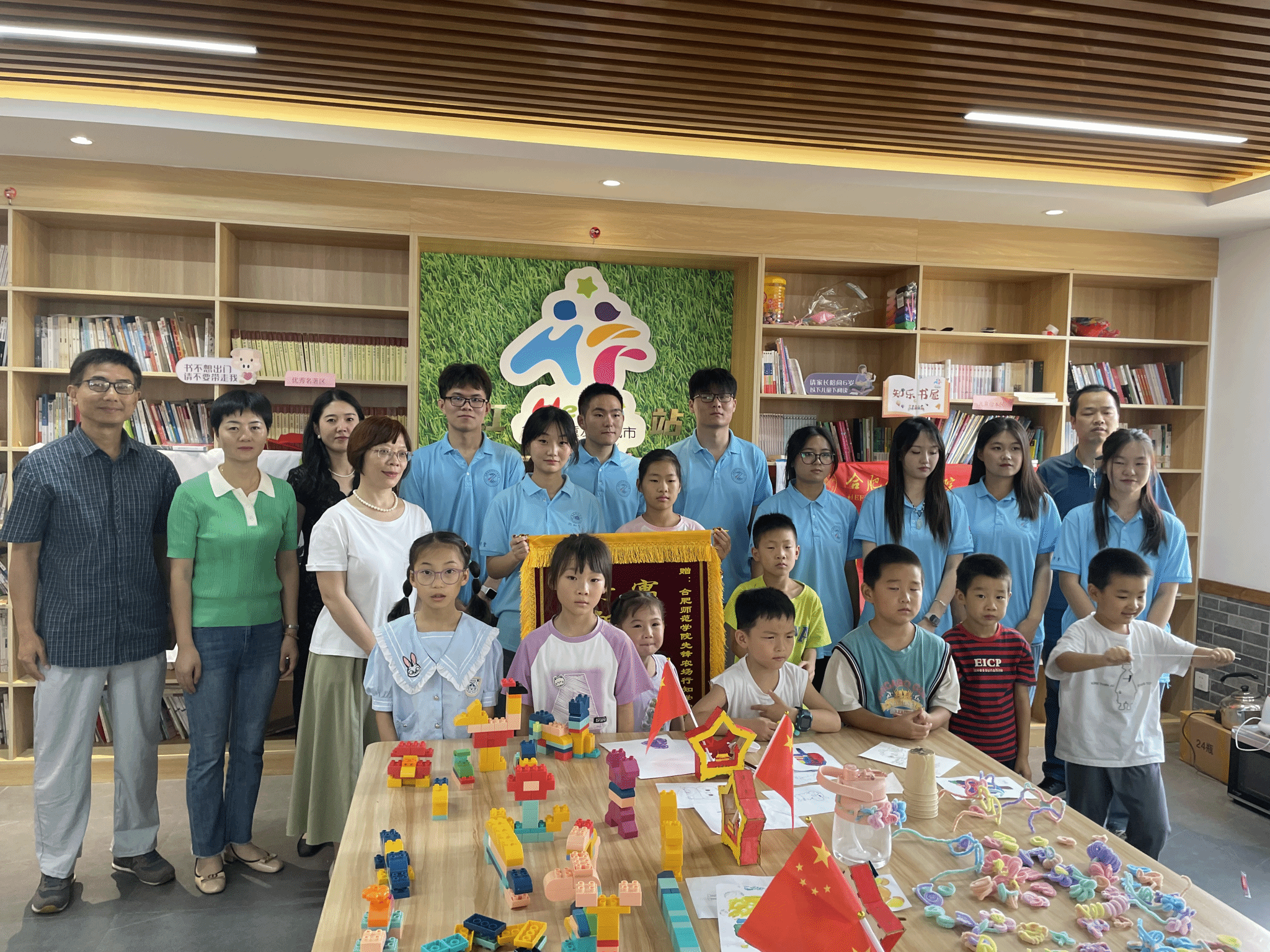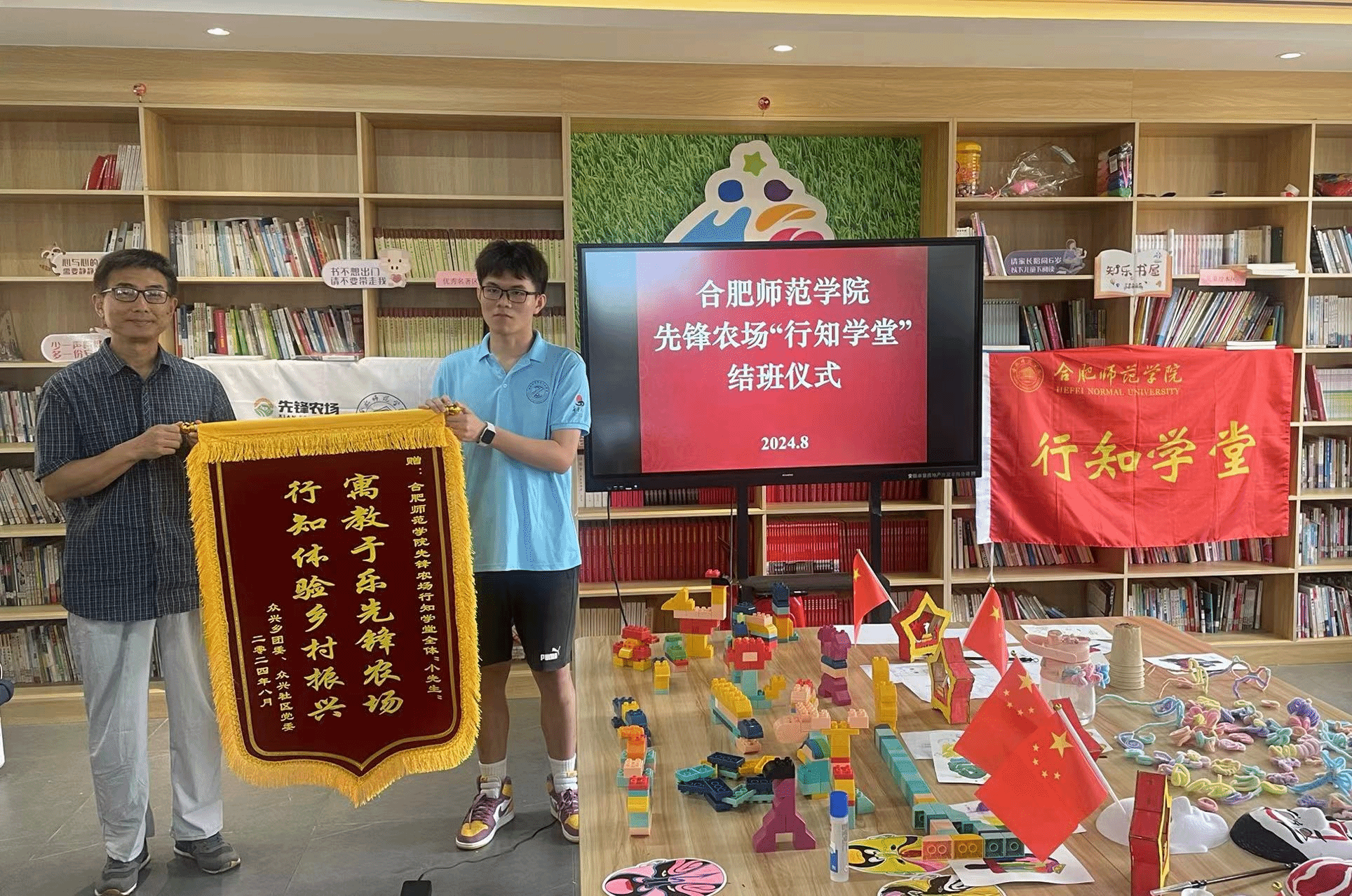 8月9日下午,美术与设计学院先锋农场行知学堂结班仪式在肥东县众兴乡先锋农场乡村会客厅如期举行。众兴社区乡村振兴指导员沙宝军、党委书记任晓敏,美术与设计学院先锋农场行知学堂全体“小先生”“小学员”及部分家长参加了结班仪式。