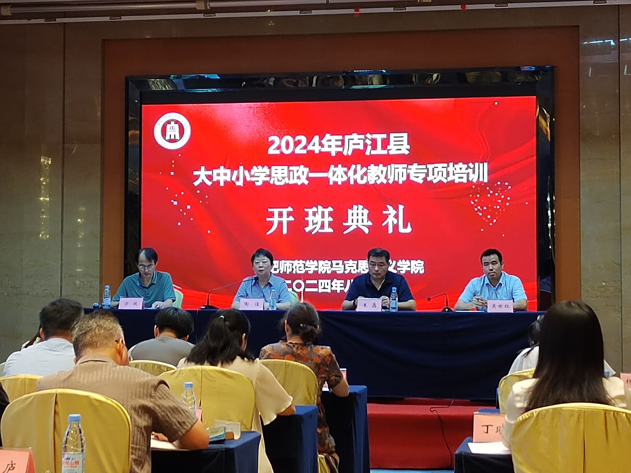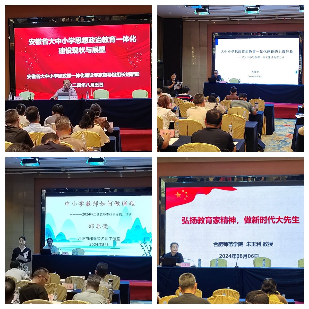 8月4—9日,由马克思主义学院承办的2024年庐江县大中小学思政一体化教师专项培训,在合肥丰大国际酒店举办。来自合肥市庐江县的50余名中小学思政课教师参加培训。