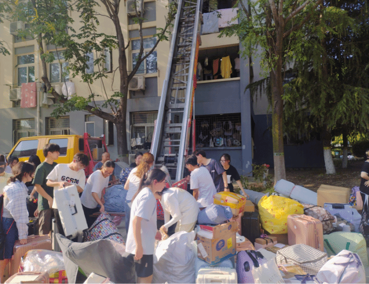 搬迁过程中,经济与管理学院党政班子、辅导员老师现场指导,全程参与。搬迁现场,副院长钟玉文主动为学生购买矿泉水,防止学生中暑。值得一提的是,在搬运行李的过程中,很多同学不惧酷暑主动到现场帮忙,特别是2022级经济学班李子旋、余康宁两位同学,自己的行李物品都顾不上搬运,就主动参与到女生宿舍10号楼的行李搬运志愿服务活动中,37度的高温,4个小时的辛勤劳动,汗水一遍一遍浸透了衣服,但他们的热情丝毫未有消减,得到了老师和同学们的一致好评,体现了新时代大学生责任担当与精神风貌。