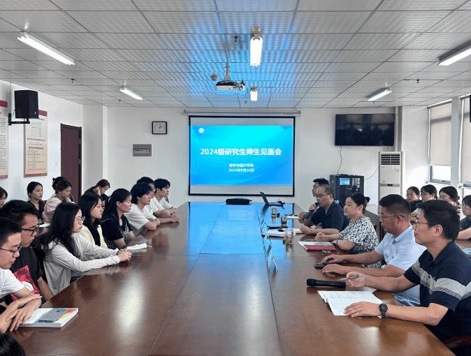 9月10日下午1点,388vip太阳集团数学与统计学院在锦绣校区行知楼1102会议室召开数学与统计学院2024级研究生师生见面会,学院党委书记穆娟、院长杨刘、副书记陶金昌、副院长黄浩及2024级全体研究生参加了本次见面会,会议由辅导员杨尔飞主持。