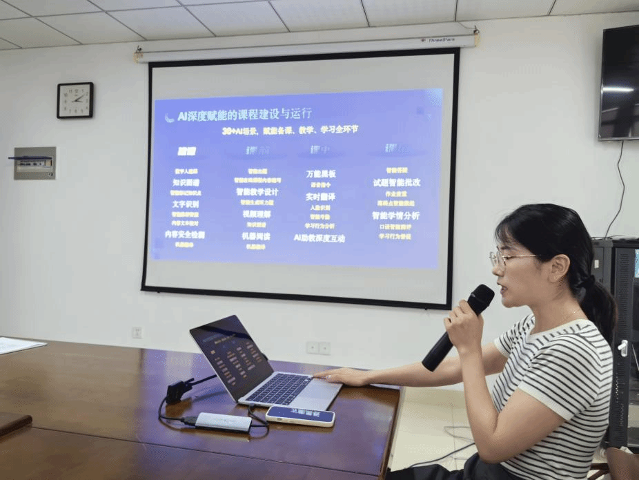 为进一步落实教育数字化转型,以信息技术驱动课程改革与创新,推动教师运用人工智能、知识图谱等信息技术手段辅助教学,助力教师提升数字化素养与信息化教学能力,9月11日下午,数学与统计学院在行知楼1102会议室举办AI赋能教师信息化教学专题培训,培训邀请了超星集团高级培训师陆慧担任主讲,全体教职工参加培训,培训由副院长黄浩主持。